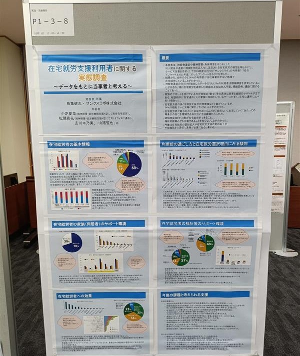 当社はポスター発表「在宅就労支援利用者に関する実態調査」をおこない、現場での実践を報告。