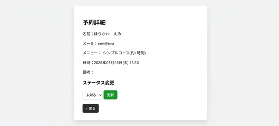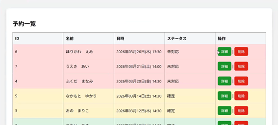 Mさんが発表したのは、PHPとMySQLを用いた自作の「予約管理システム」です。