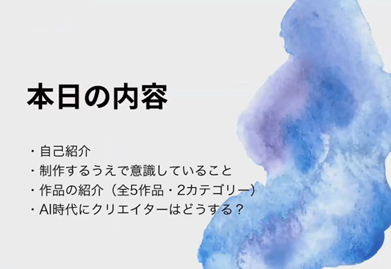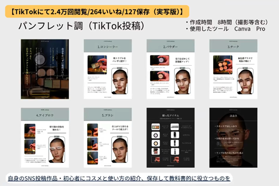 発表では、SNS投稿作品と企業向けの提案制作が共有されました。