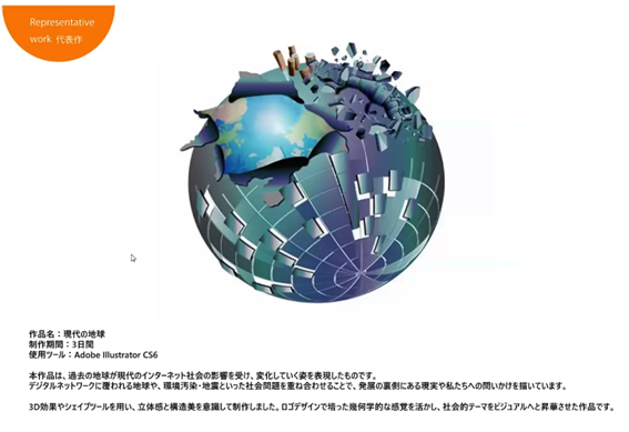代表作として紹介された『現代の地球』は、Illustrator CS6を駆使して3日間で制作された大作です。