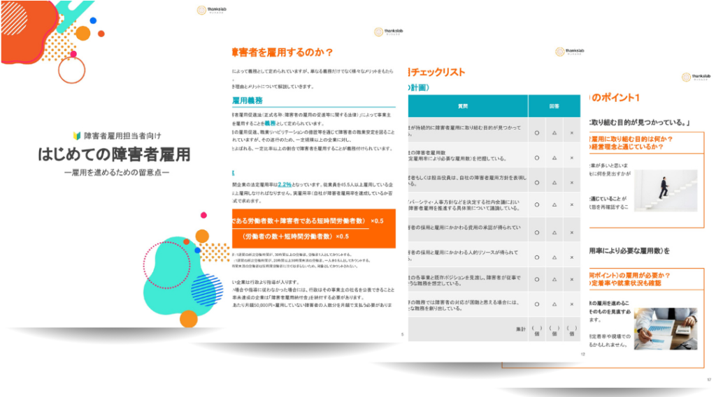 >>【資料をダウンロードする】はじめての障がい者雇用で押さえておきたいポイント