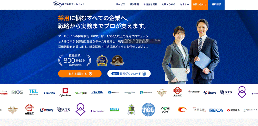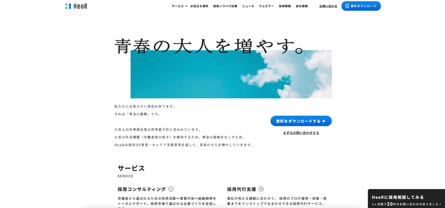 HeaR株式会社は、運用・改善・提案まで採用業務全体を任せられる採用代行(RPO)サービスです。